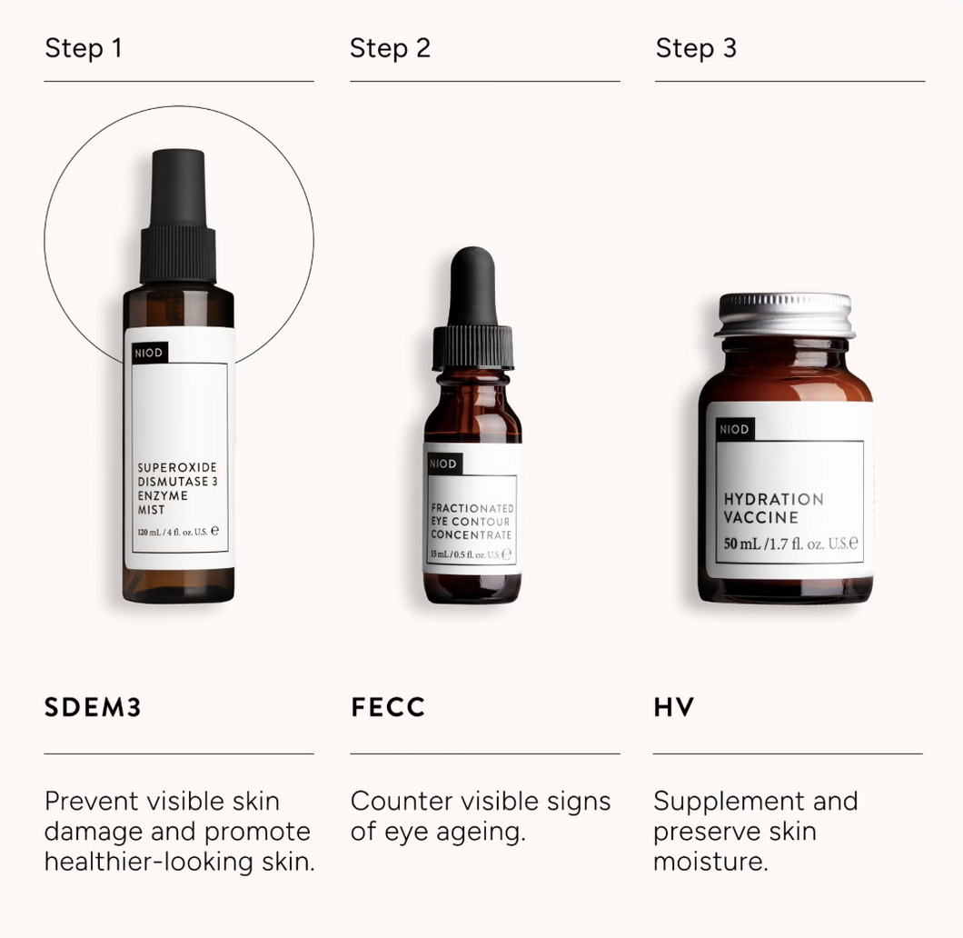 Protect and refresh your skin with NIOD's Superoxide Dismutase 3 Enzyme Mist (SDEM3) (120ml), a third-generation antioxidant facial mist designed to support long-term skin integrity.