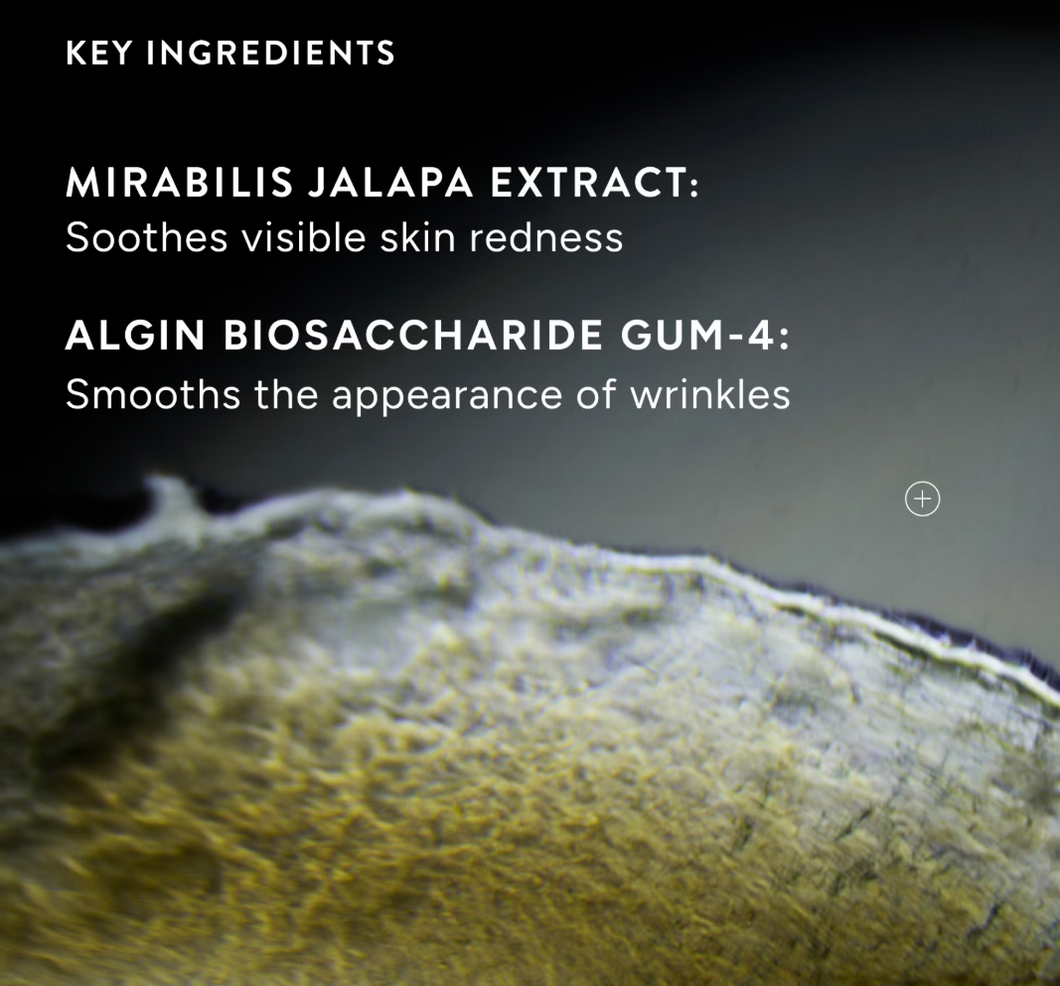 Aqua/Water/Eau, Propanediol, Butylene Glycol, Superoxide Dismutase 3, Ergothioneine, Oxidized Glutathione, Acetyl Zingerone, Nicotiana Benthamiana Hexapeptide-40 SH-Polypeptide-2, Hydrolyzed Hyaluronic Acid, Ectoin, Arginine, Sorbitol, Biosaccharide Gum-4, Mirabilis Jalapa Extract, Glycerin, Gellan Gum, Algin, Maltodextrin, Sodium Phytate, Phytic Acid, Sodium Chloride, Trisodium Ethylenediamine Disuccinate, 1,2-Hexanediol, Ethylhexylglycerin, Phenoxyethanol, Chlorphenesin.